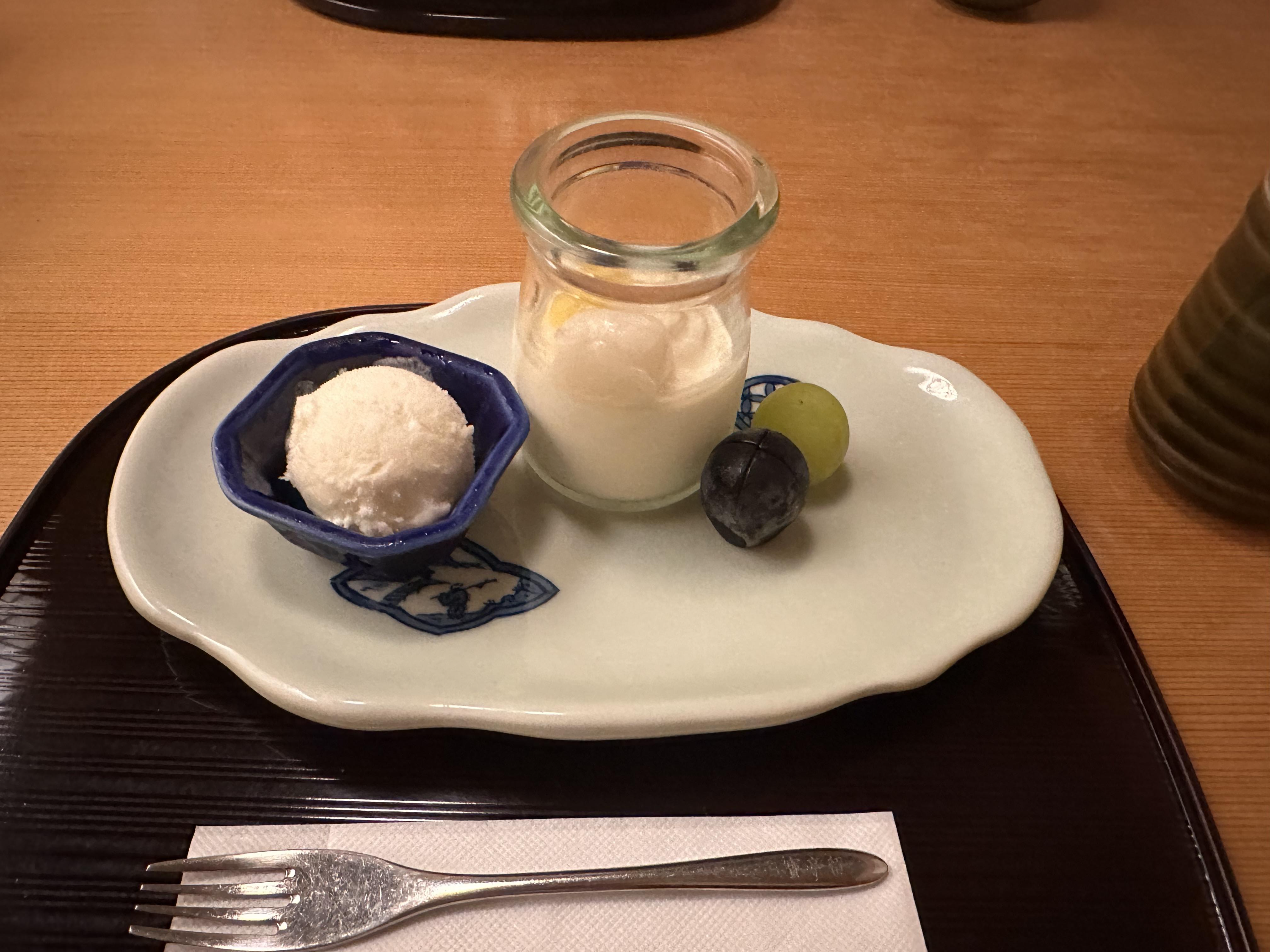 마지막 코스는 요구르트랑 포도, 셔벗였어요.