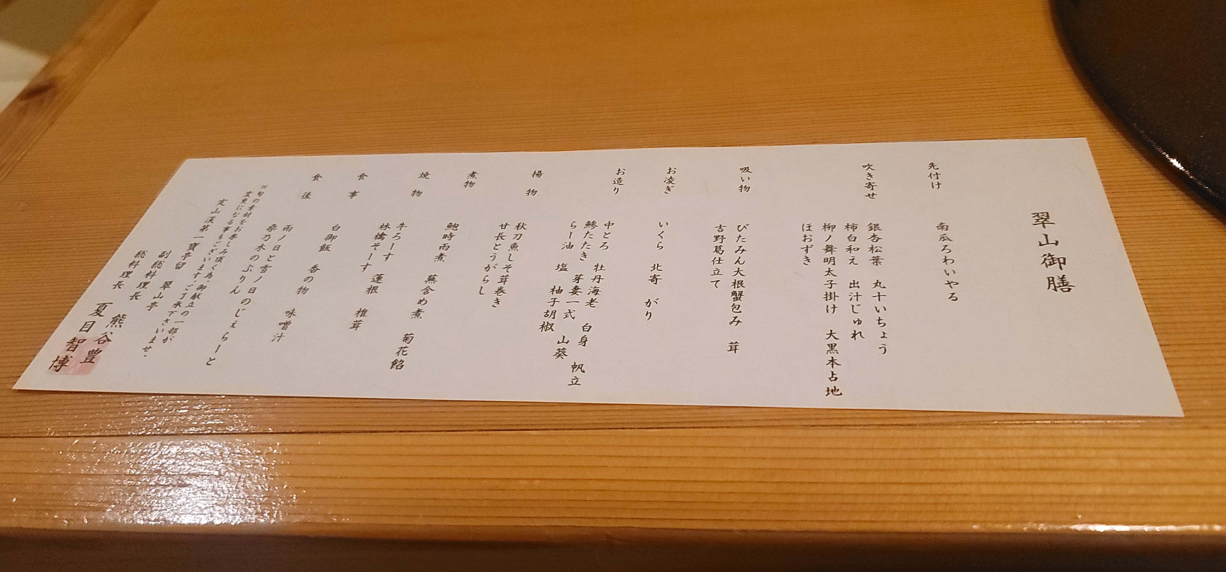 식당으로 들어가니 가이세키 코스 설명이 있었어요.