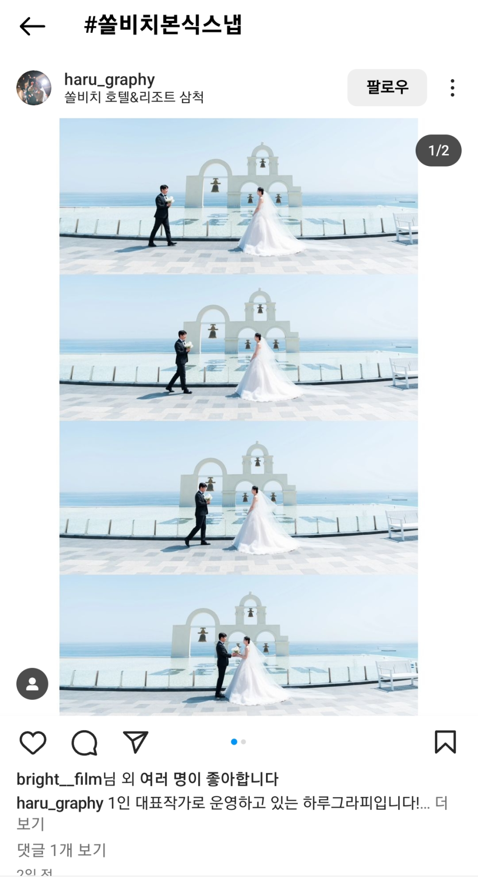 인스타그램에서 삼척 #쏠비치본식스냅으로 검색했는데 바로 보였던 사진 한장!