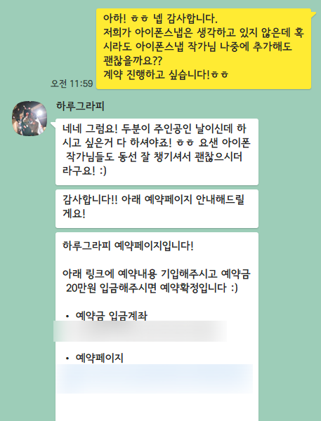 본식스냅 예약하면서도 계약서를 보내준다는 업체는 하루그라피가 처음이었다.
