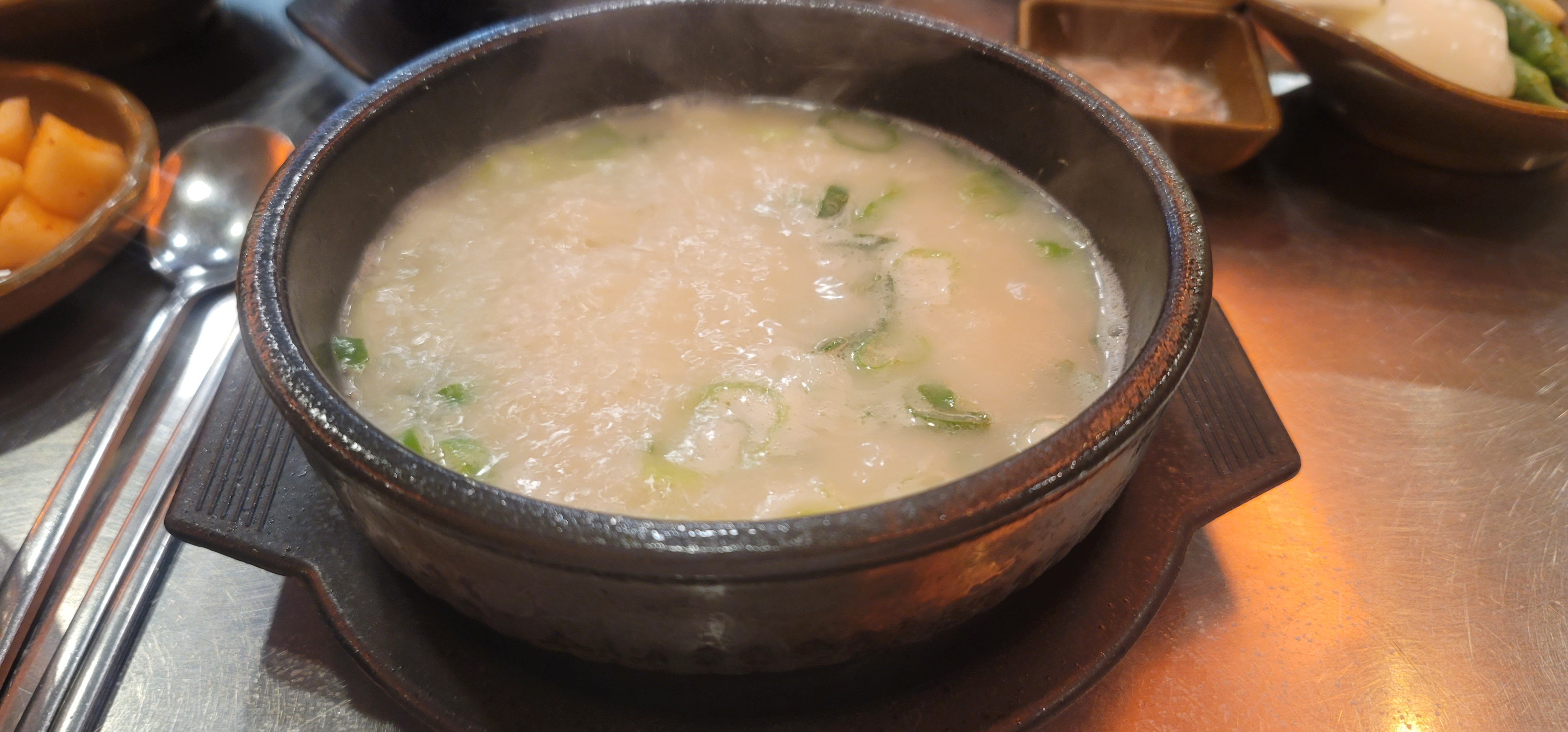 국은 찐한 사골국느낌이고 짭짤해서 추가 간은 하지 않아도 되겠더라구요.