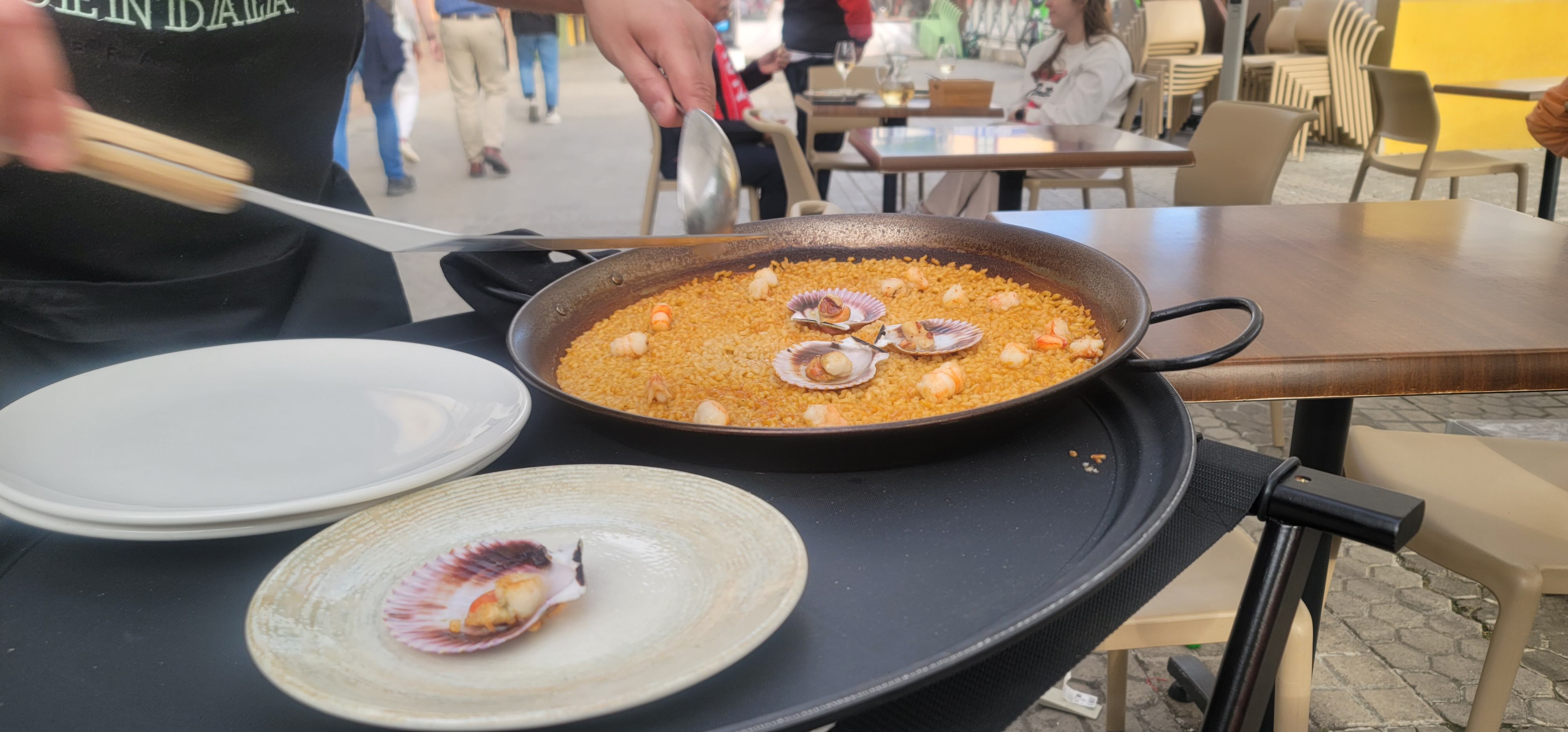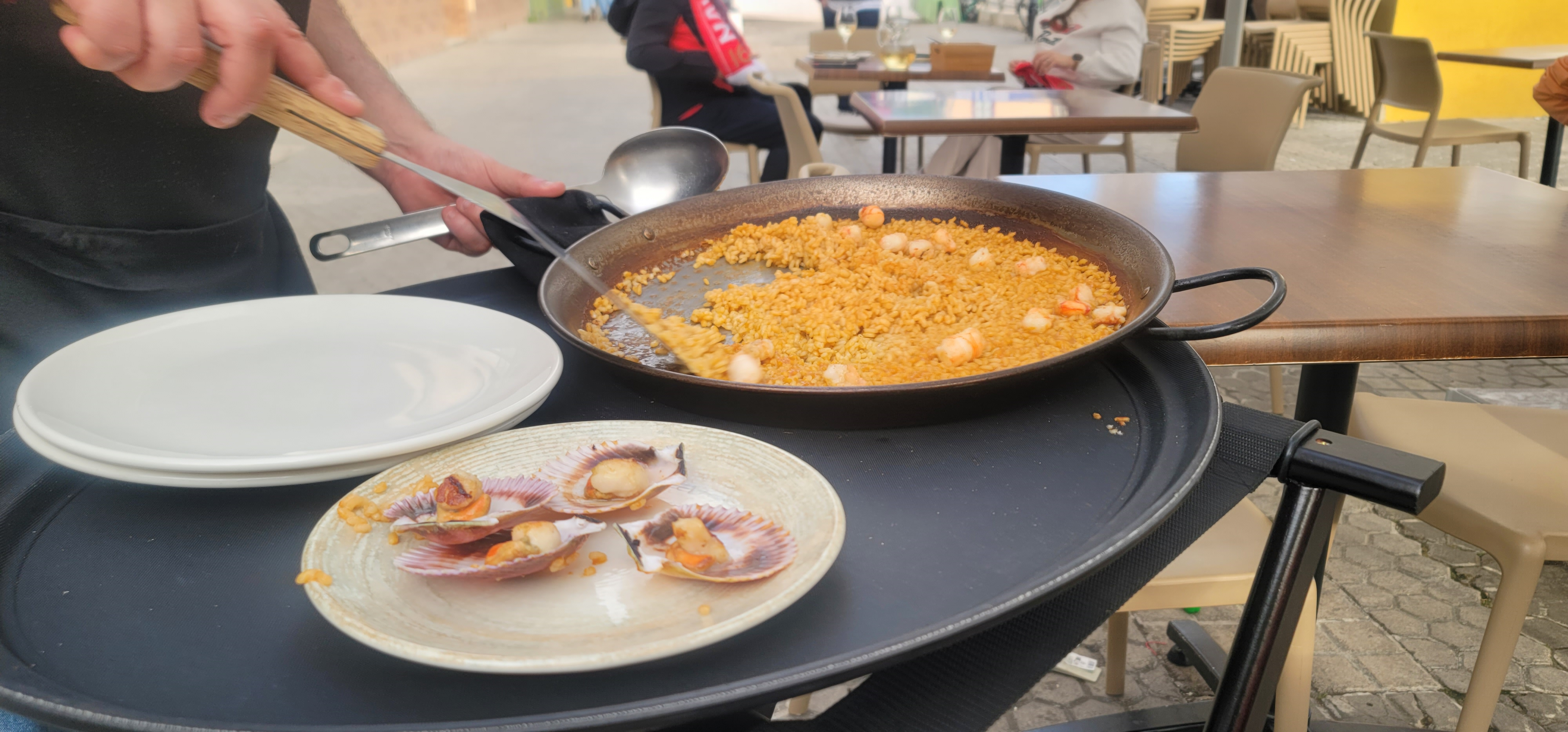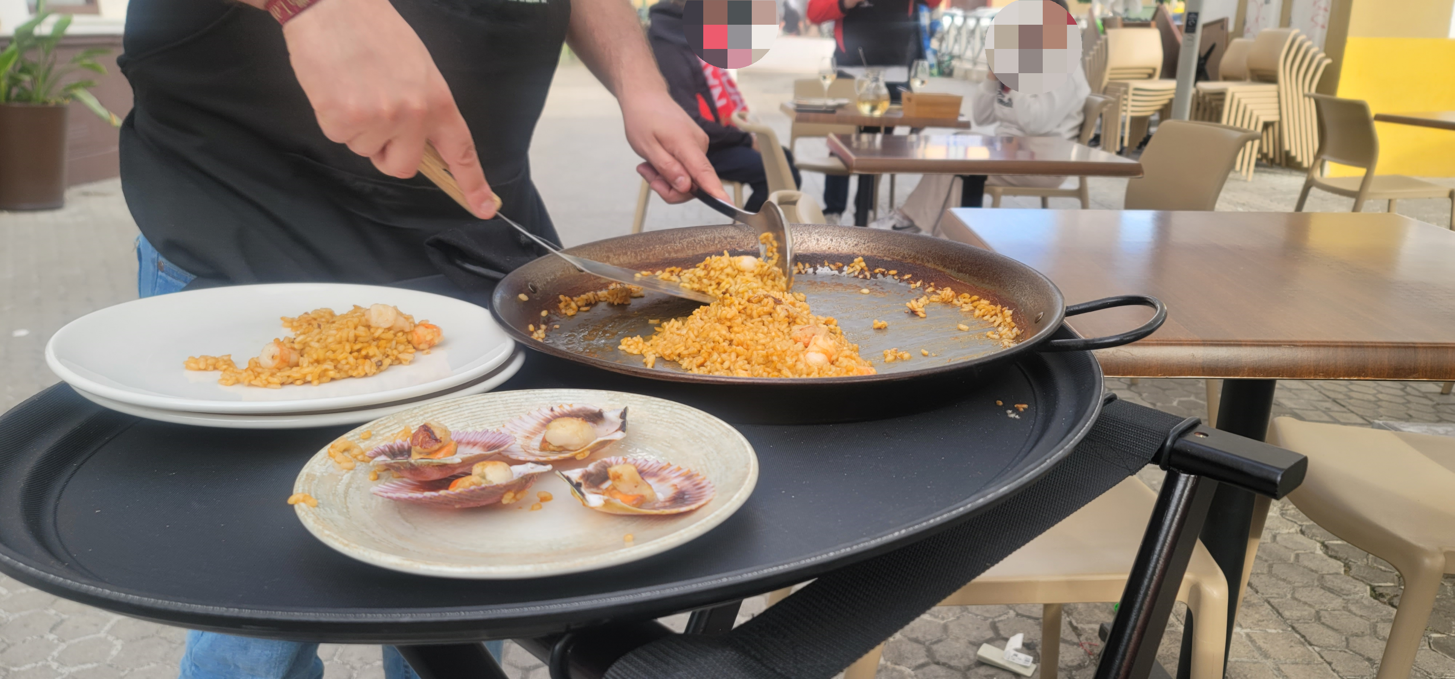 빠에야를 주문했더니 직원이 직접 자리로 가져와서 배분해줬어요.