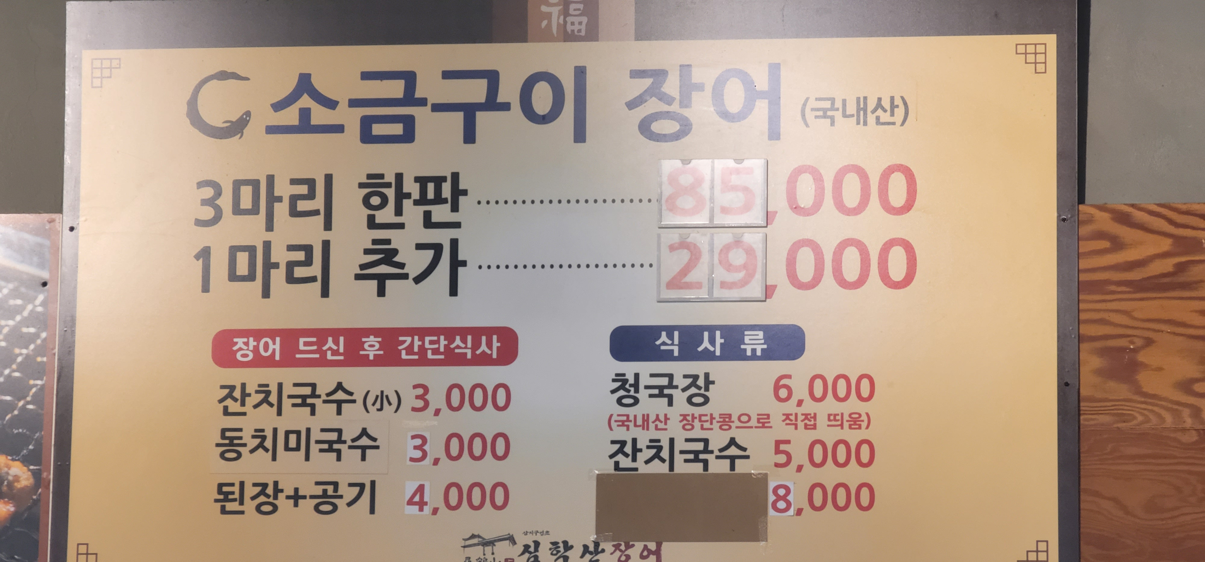 어릴땐 소금구이보다 양념구이 장어를 더 좋아했는데 여기는 소금구이만 있어요.