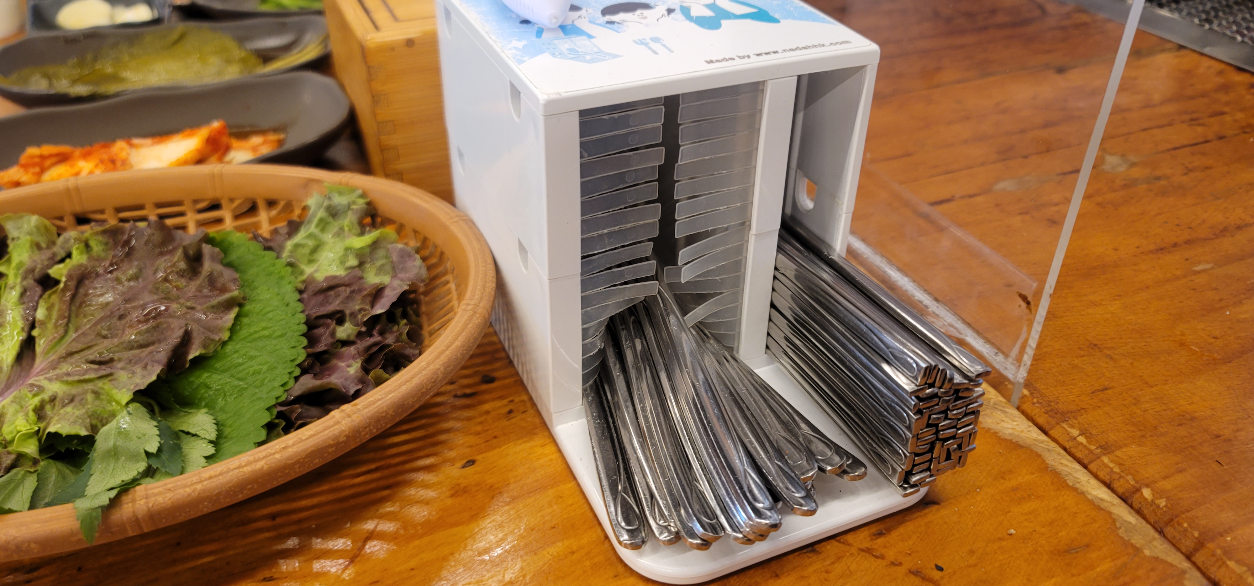 자리마다 놓여있는 수저통이 신기해서 찍어봤습니다.