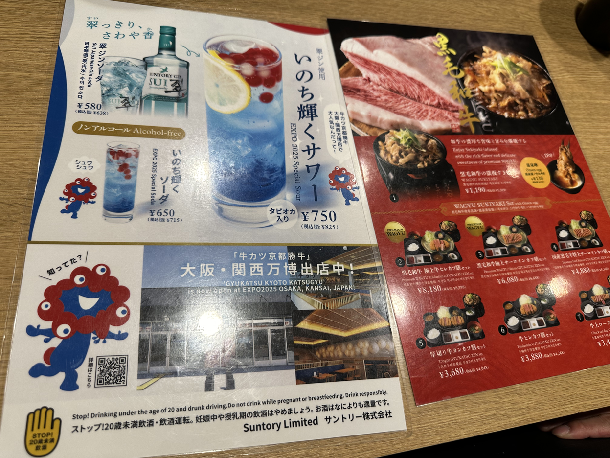 마친 오사카 박람회가 있던 시기라 규카츠 교토가츠규 매장에는 시그니처 음료가 있더라구요.