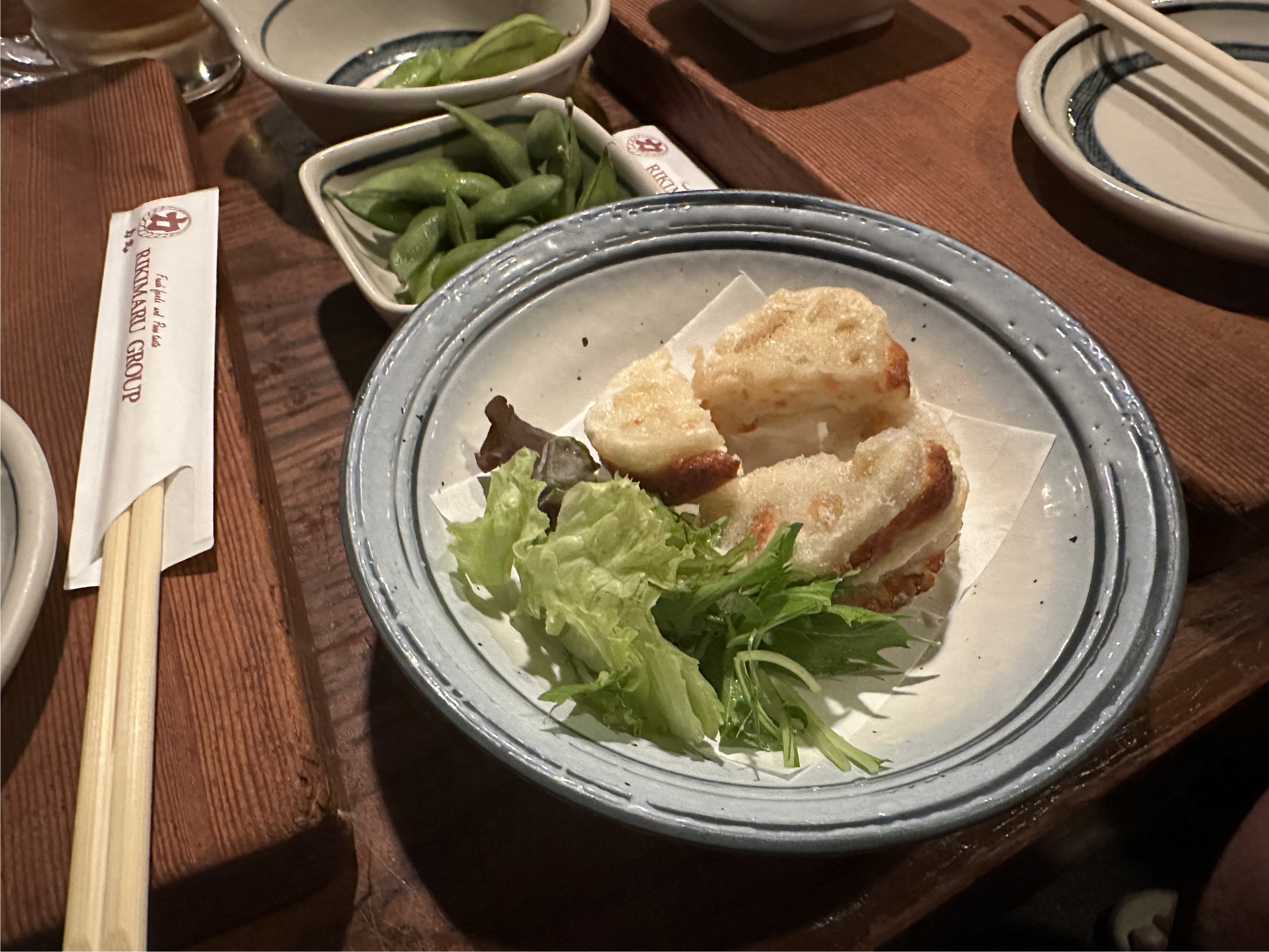 샐러드가 같이 나와서 건강해 보였어요. 연근 튀김은 살면서 처음이었는데 구울 때 소금을 뿌려주셔서 간장없이도 짭짤하니 고소하면서 맛있었어요.