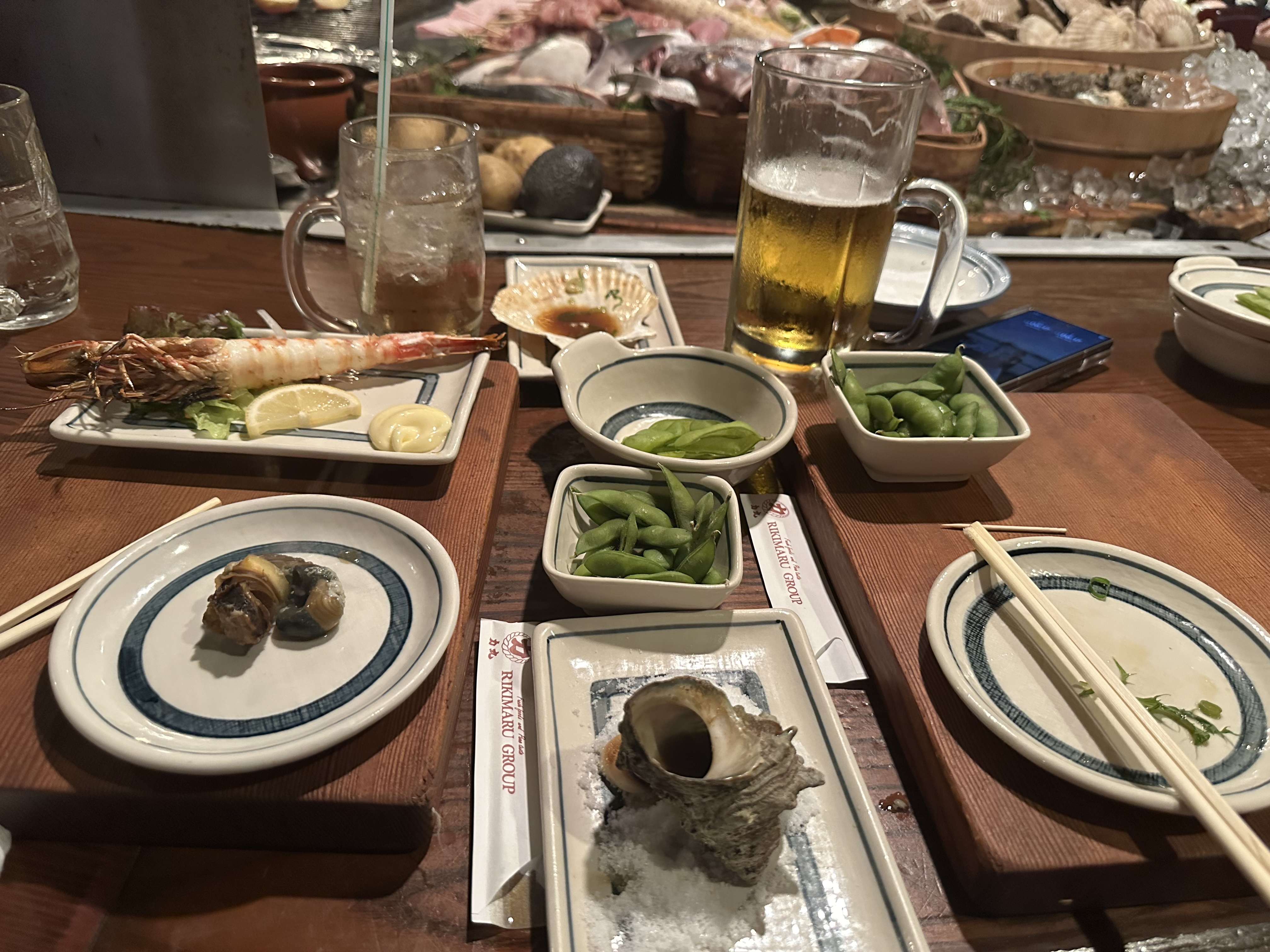 로바다야끼 이사리비는 고기와 해산물 뿐만 아니라 회도 주문할 수 있어요.