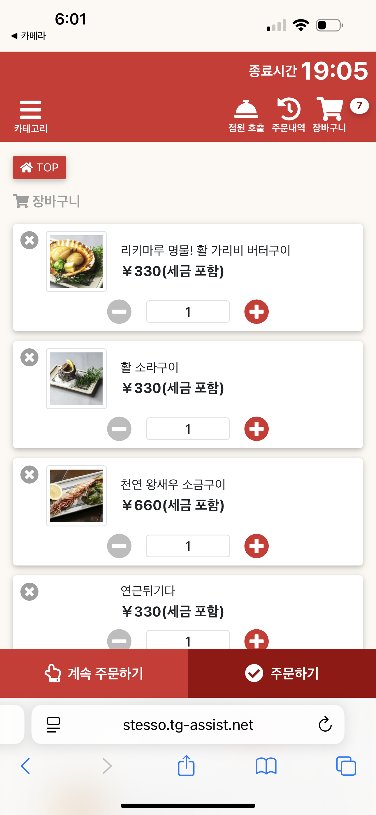 관리자같은 분이 마지막 오더할 수 있는데 뭐 더 먹을래? 하고 확인하고 다니세요.