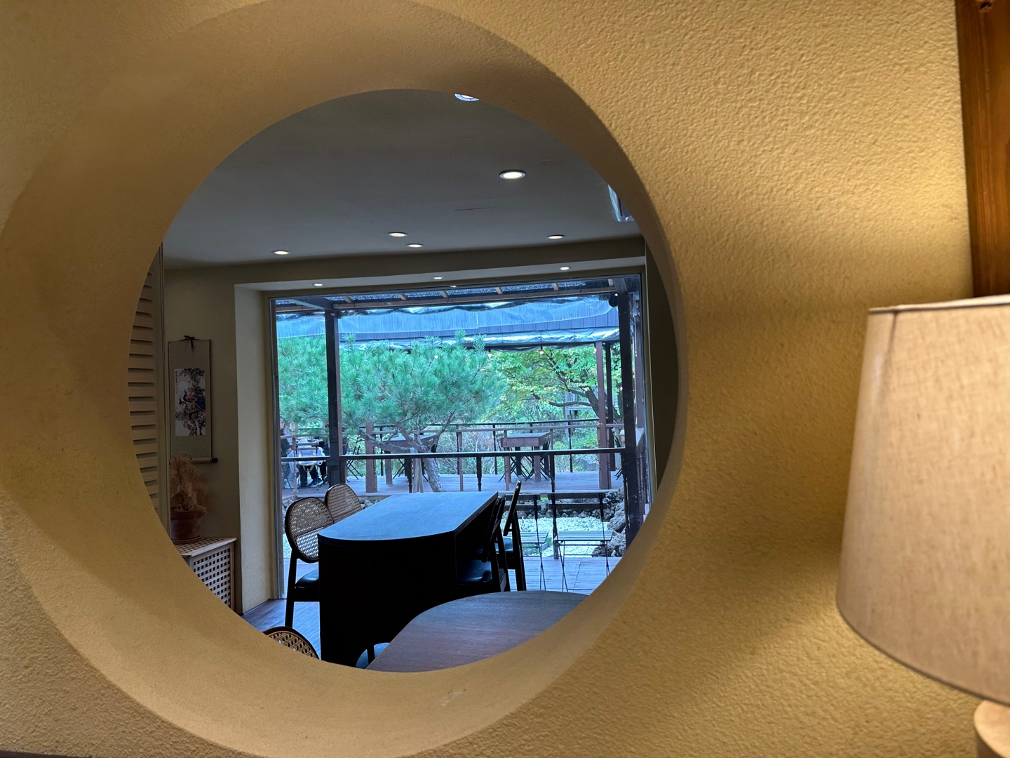 1층도 약간 중국풍 분위기에 동그란 창이 인상적이었어요.