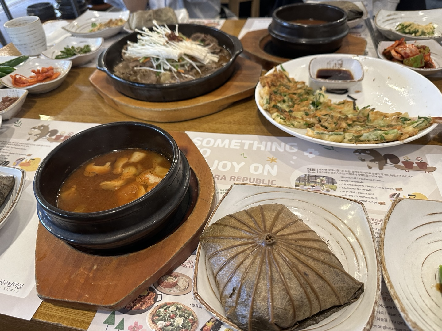 춘천 남이섬을 찾았다면 섬 안에서 한식의 정취를 느낄 수 있는 ‘남문’ 식당을 추천한다. 이곳은 남이섬 남문 입구 근처에 위치한 정갈한 한식당으로, 단체 관광객이 자주 찾는 곳이다. 나는 오전 11시 30분경 방문했는데 이미 단체 예약 손님들로 내부가 꽤 붐볐다. 하지만 테이블 회전이 빠르고 직원 안내가 친절해 대기 시간은 길지 않았다.