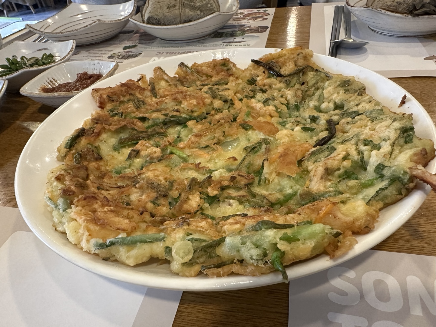 해문파전은 바삭하고 오징어가 통통하게 들어있었다. 연잎밥 정식도 이미 양이 많아서 파전까지 먹기엔 배가 불렀다.