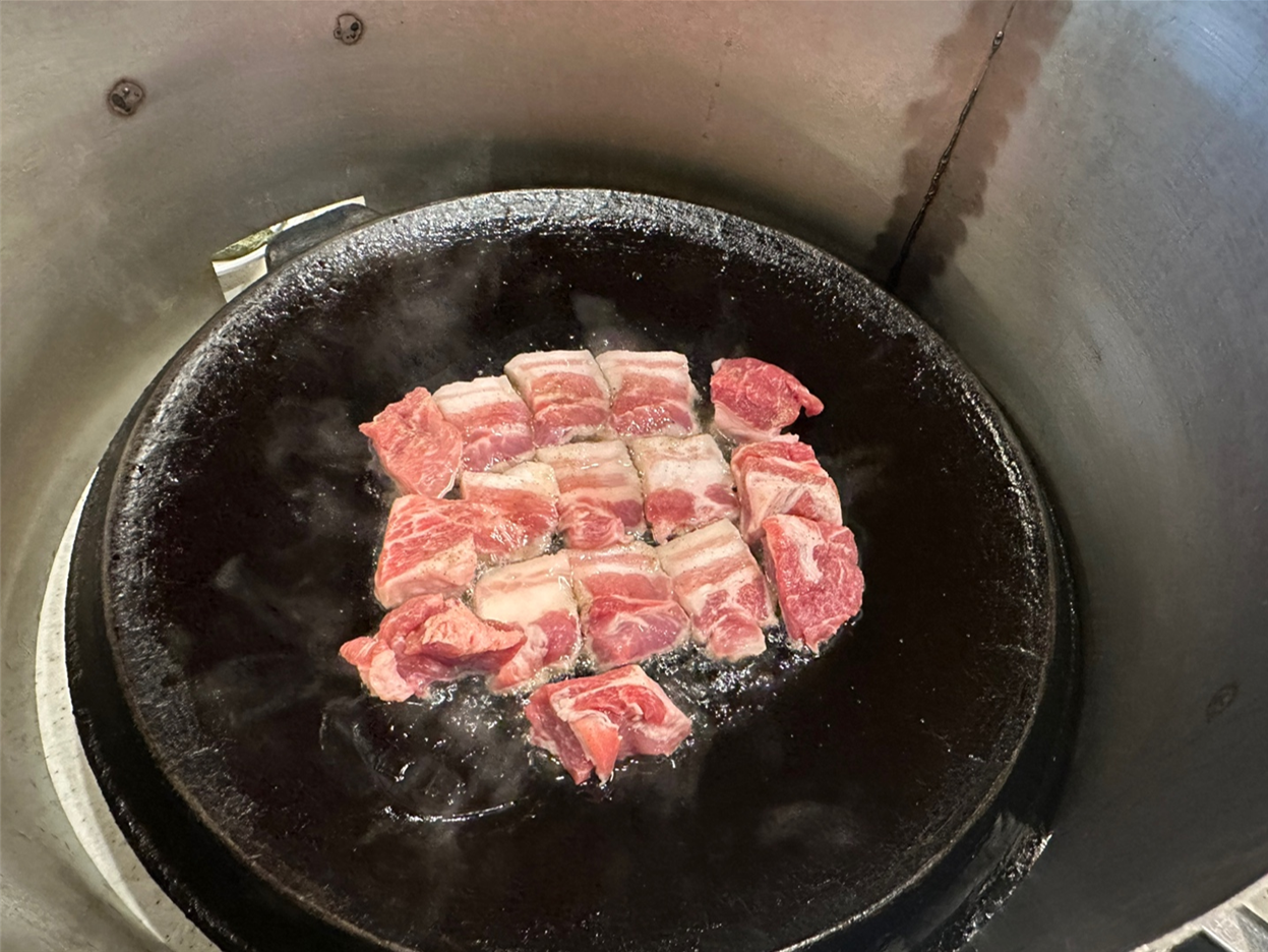 진짜무쇠삼겹살의 가장 큰 매력은 고기 본연의 맛이다. 별도의 양념 없이도 고기 자체의 풍미가 진하고, 무쇠판 특유의 높은 열전도로 겉은 노릇하게, 속은 육즙이 그대로 살아 있다.