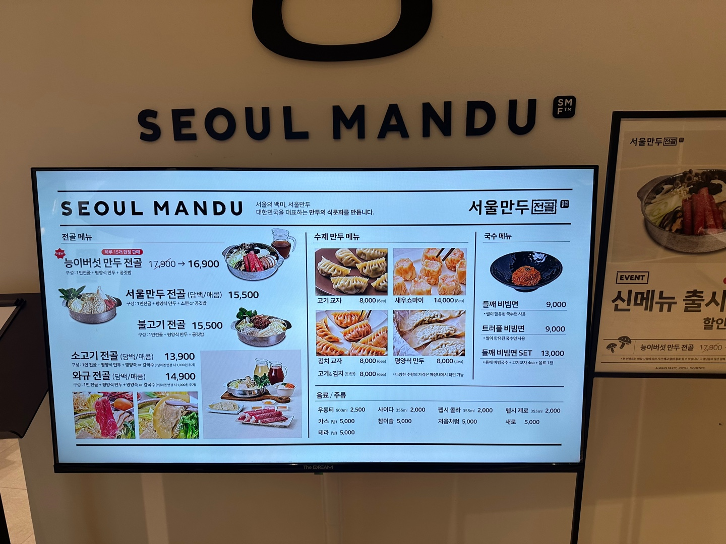 - 평양식만두, 김치교자, 고기교자 등 (품절 여부는 시간대별 상이)