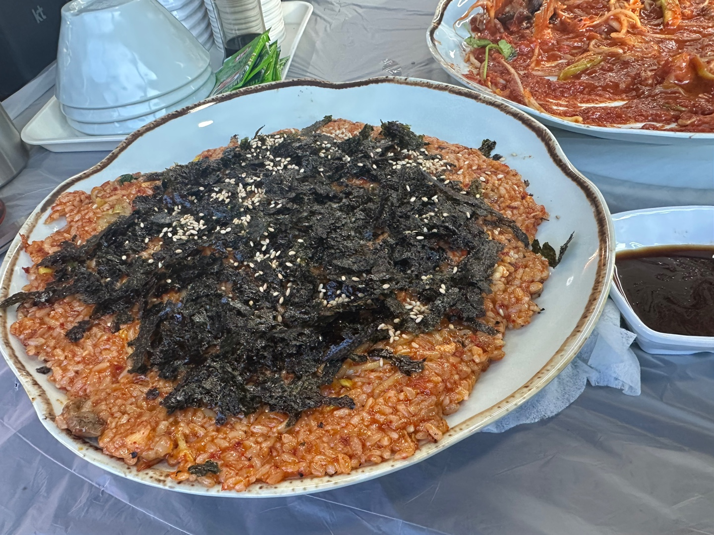 대구뽈찜은 처음 먹어봤다. 뼈가 많았는데, 대구뽈찜은 원래 그런 뼈 맛과 식감을 즐기는 음식이라고 했다. 양념이 정말 맛있어서 결국 마지막에는 밥을 볶아달라고 했다. 아버지는 “볶음밥은 최소 3개”라며 호기롭게 주문했지만, 막상 나오고 보니 너무 배가 불러 결국 남기고 말았다.