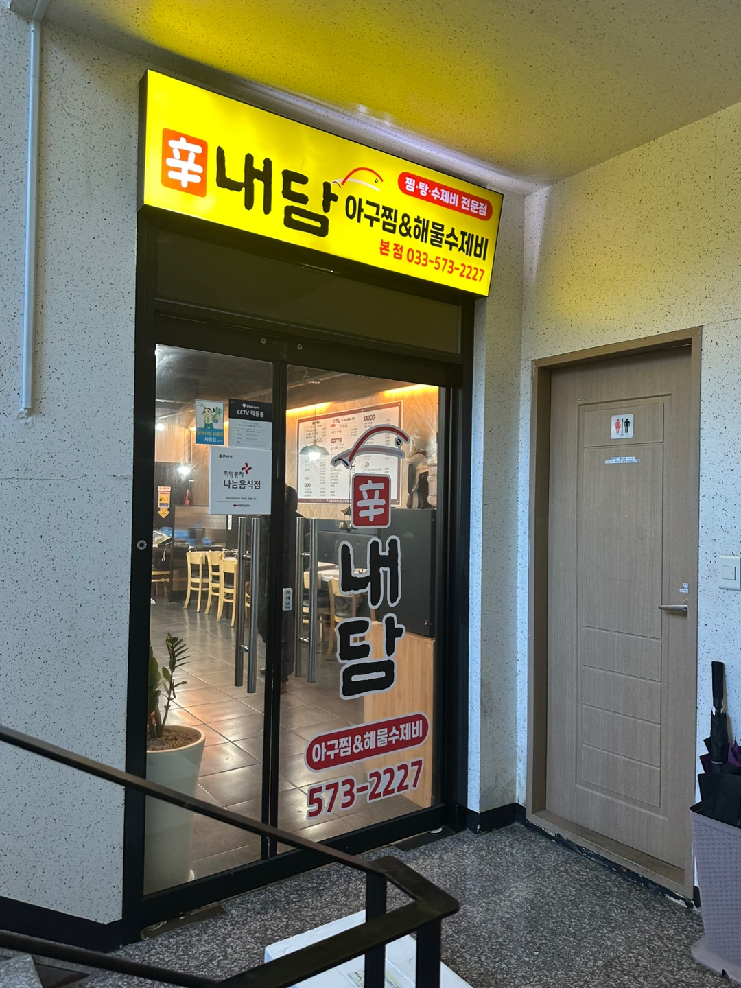 강원도 삼척에 위치한 내담아구찜에 다녀왔다. 생각보다 시내 깊숙한 곳, 구석진 위치에 있어 처음엔 찾기 쉽지 않았다. 여동생과 부모님은 이미 한 번 방문한 적이 있다고 했다. 어떻게 알게 됐냐고 물어보니, 전단지를 보고 방문했다고 한다. 오픈한 지 얼마 안 됐을 때 전단지를 지참하면 할인해 주는 행사가 있었고, 그때 먹어보고 맛있어서 기억하고 있던 집이라고 했다.