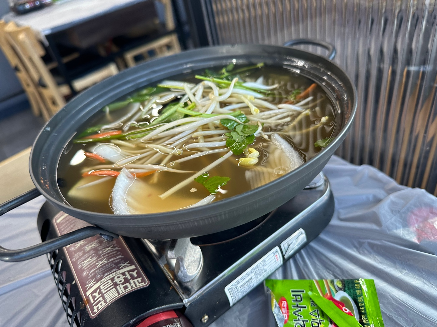 아구찜과 함께 맑은 탕이 제공된다. 국물이 시원하고 깔끔해서 입안을 정리해 주는 역할을 한다. 매콤한 아구찜과의 조합도 좋고, 뜨끈한 국물이 있어 전체 식사가 더 편안하게 느껴졌다.