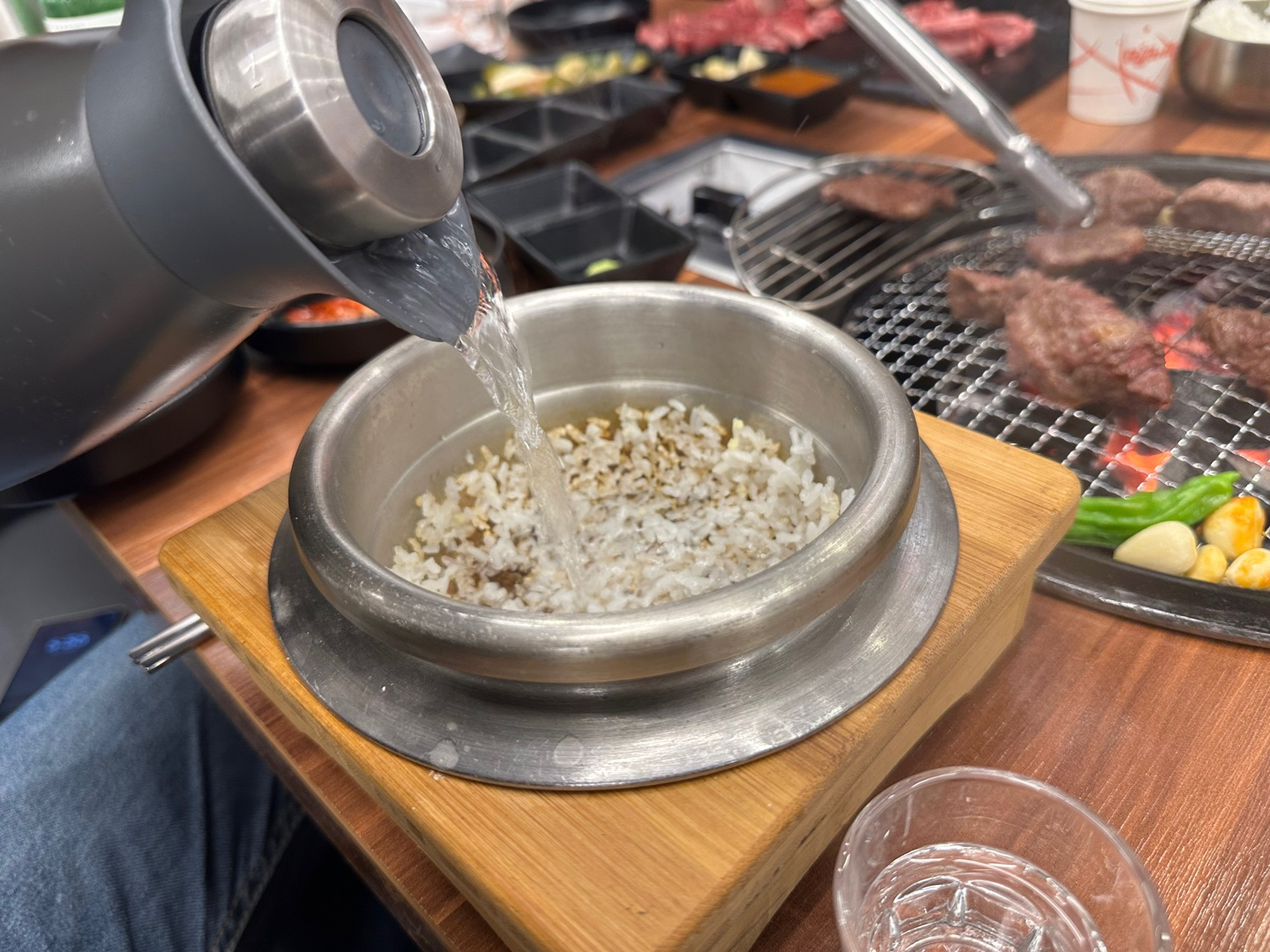 남편은 확실한 밥파라서 밥을 꼭 주문하는데, 메뉴판을 보니 솥밥이 있길래 바로 하나 주문했다. 조카는 공기밥을 주문했는데, 솥밥이 생각보다 너무 빨리 나와서 “나도 솥밥 시킬 걸” 하고 바로 후회했다. 그 정도로 서빙 속도가 빠른 편이었다.