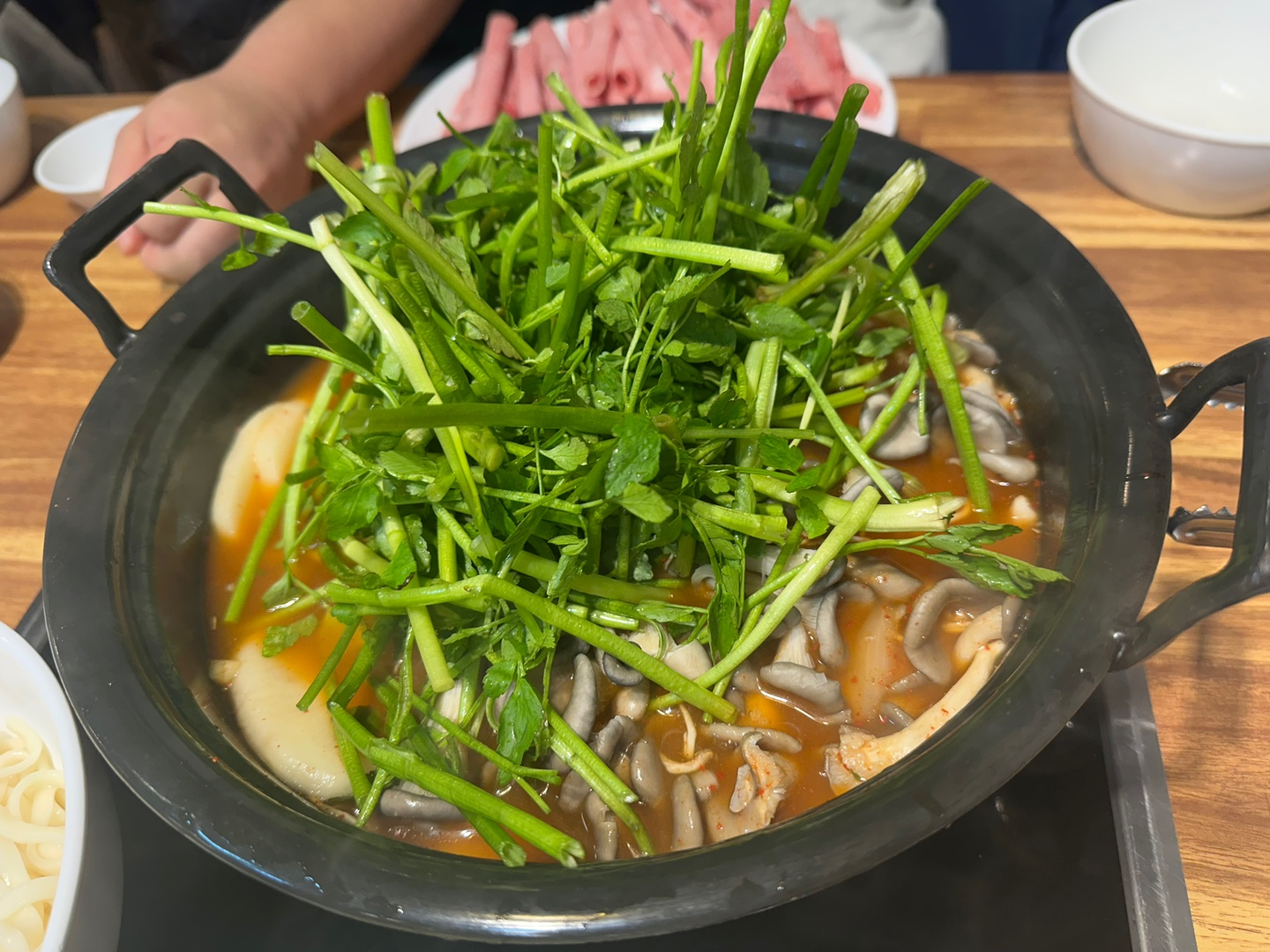 고기도 생각보다 넉넉하게 제공된다. 냉동 고기이지만 선홍빛 고기 색깔이 좋아 첫인상이 괜찮았고, 육수에 살짝만 데쳐 먹어도 질기지 않았다. 전체적으로 가볍게 먹었는데도 배부른 구성이라 저녁 메뉴로 만족도가 높다.